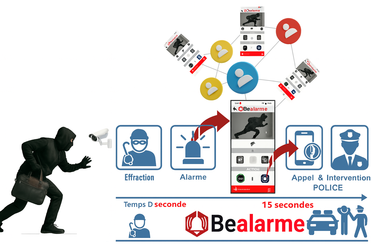 Avec My Alarme, vous avez une solution unique qui vous permet d’agir en gérant votre propre système et non des milliers d’autres comme une télésurveillance : en quelques secondes seulement, vous pouvez choisir d’informer la police d’une intrusion avec Be Alarme. Alors qu’avec une télésurveillance classique, il faut compter entre 10 et 15 minutes avant que les services de police reçoivent l’information.